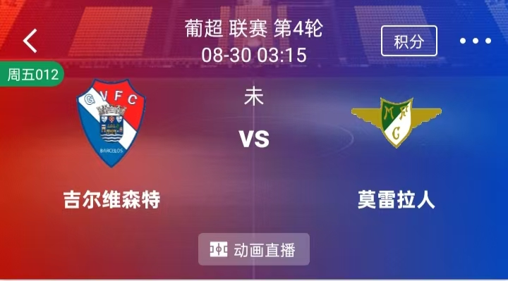 周五 012 葡超:吉维森特VS莫雷伦斯