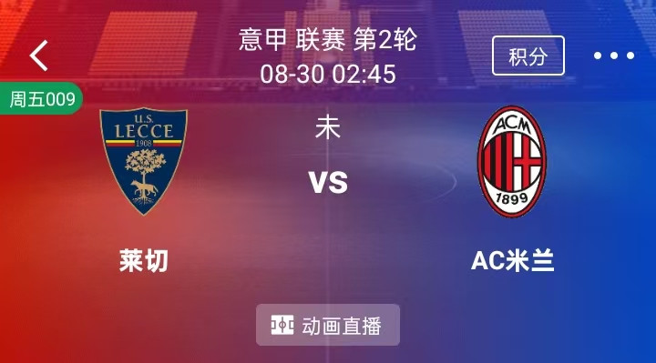 AC米兰则是意甲联赛的老牌豪门,上赛季球队整体发挥远不及预期之内——以18胜9平11负的战绩仅排名意甲积分榜第8位、意大利杯决赛0-1败给了博洛尼亚,未能如愿拿到欧战席位。休赛期间,AC米兰经历了换帅与主力阵容更替的双重变动,这或许为球队新赛季的征程埋下了隐患;果不其然,在新赛季首轮联赛中,坐镇主场的AC米兰便遭遇当头一棒,以1-2的比分爆冷不敌升班马克雷莫纳,无奈吞下开门黑的苦果。而且更为不利的是,AC米兰的伤病危机仍在持续,球队边锋莱奥目前仍在单独训练,能否出战客场对阵莱切的比赛仍存在巨大疑问,这位葡萄牙国脚此前在意大利杯对阵巴里的比赛中遭遇小腿肌肉伤势,此后一直未能随队合练,他已因此缺席了首轮联赛对阵克雷莫纳的比赛。